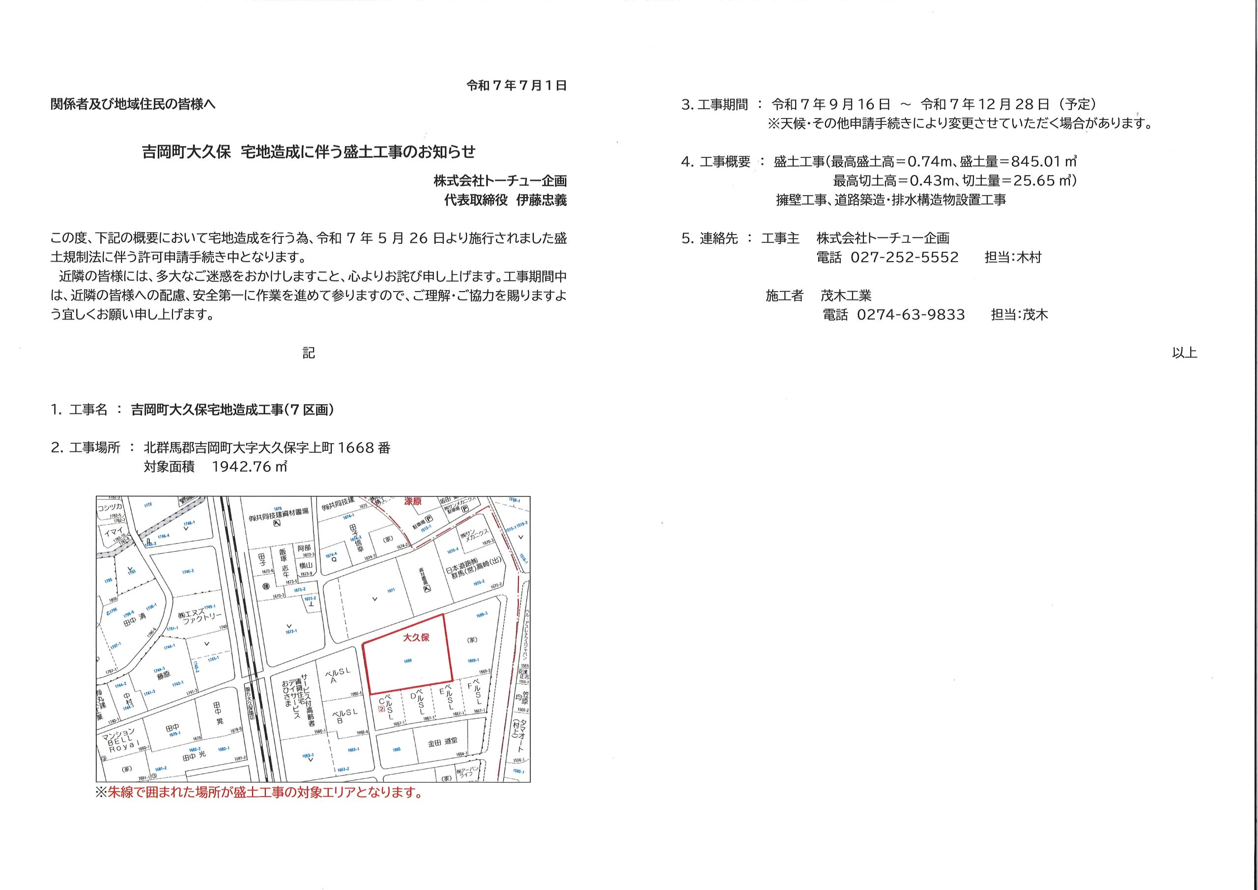 吉岡町大久保 宅地造成に伴う盛土工事のお知らせ
